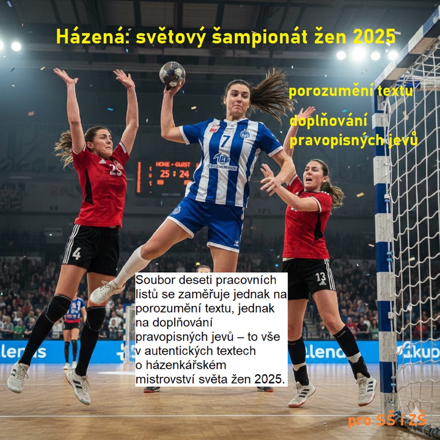 Soubor deseti pracovních listů se zaměřuje jednak na porozumění textu, jednak na doplňování pravopisných jevů – to vše v autentických textech o házenkářském mistrovství světa žen 2025.