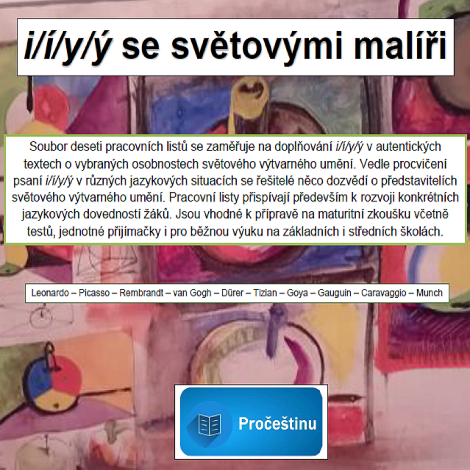 soubor deseti pracovních listů na doplňování i/í/y/ý v autentických textech o vybraných osobnostech světového výtvarného umění