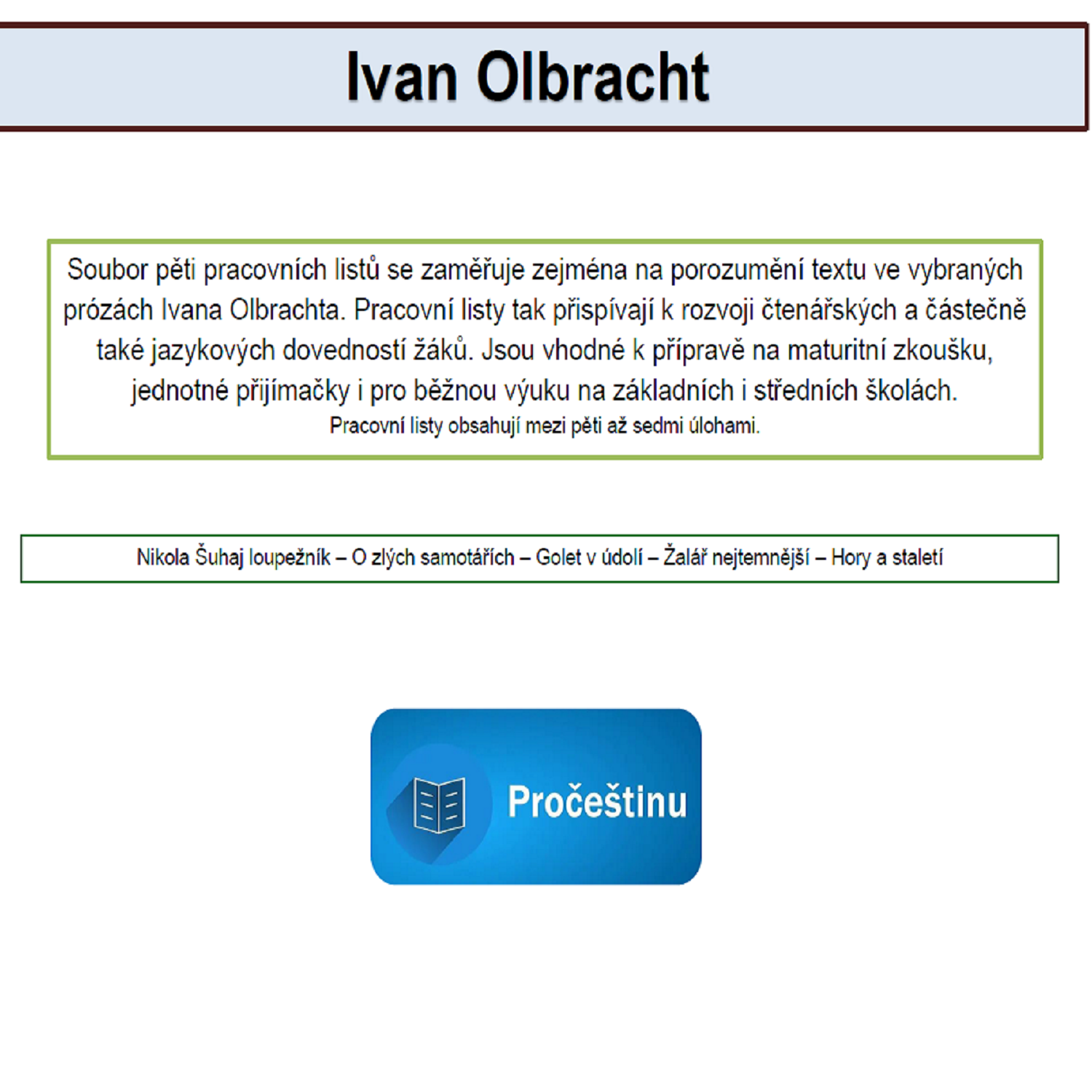 soubor 5 pracovních liatů pracujících se čtenářskými dovednostmi v ukázkách z děl Iana Olbrachta