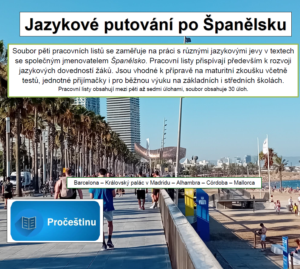 soubor pěti pracovních listů se zaměřením na práci s různými jazykovými jevy v textech o Španělsku